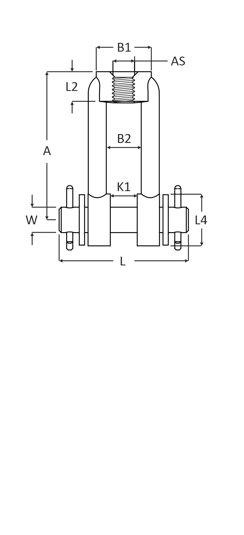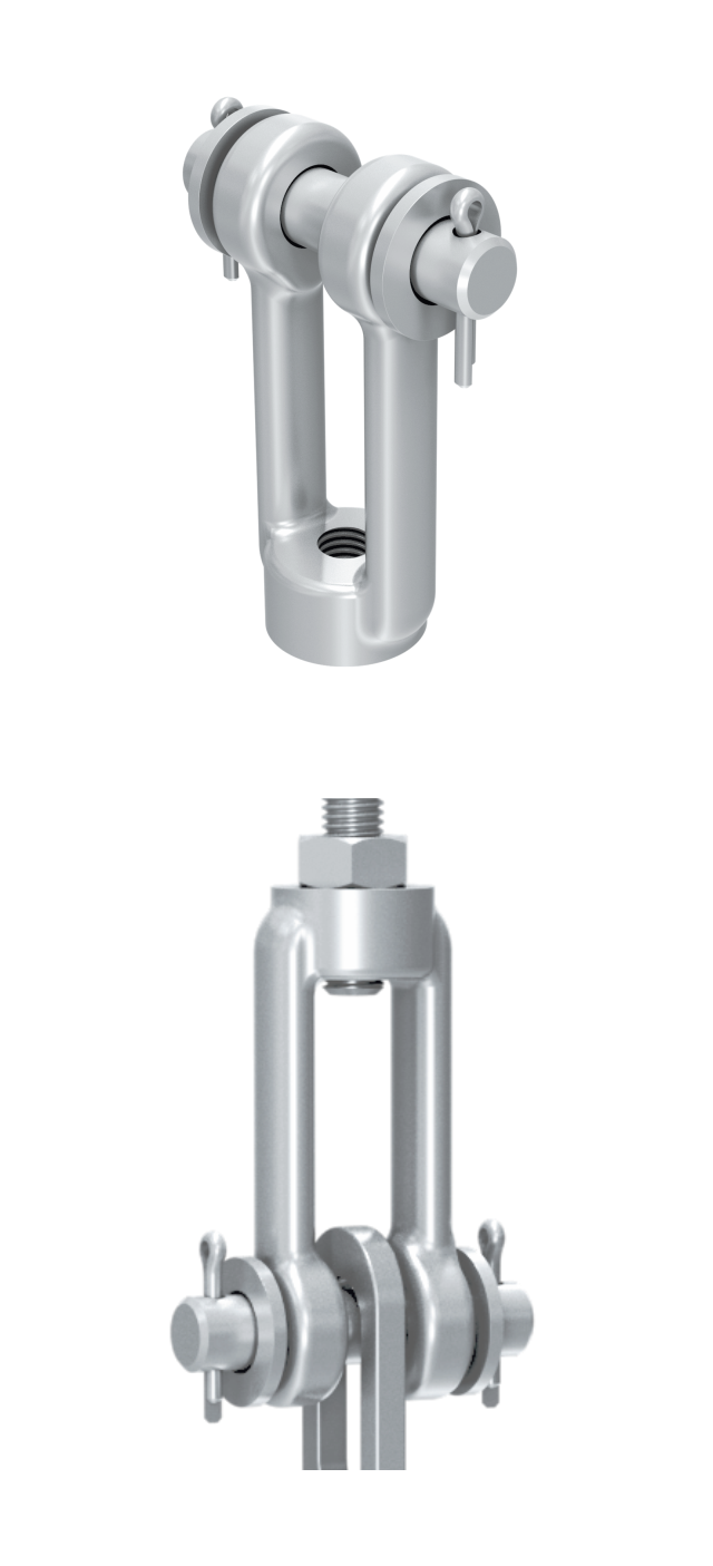 | Specificaties | : ophangelementen: gaffel met binnendraad inclusief borgpen. |